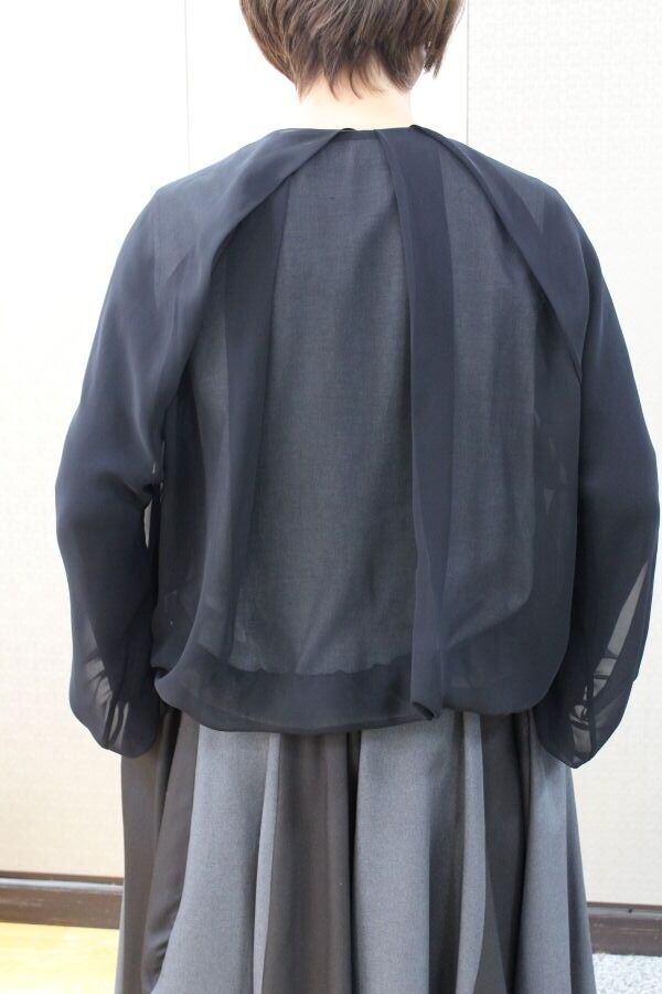 無地のジョーゼットから透ける今季のテーマ「NEW YORK」を基にマンハッタンの地図を描いたプリントが素敵なショートブラウス☆