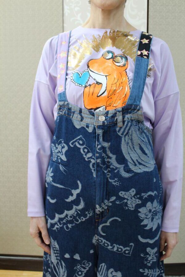 シーズンテーマの"Paradis"をデニムジャガードに織り込んだソフトデニムのサロペット☆
