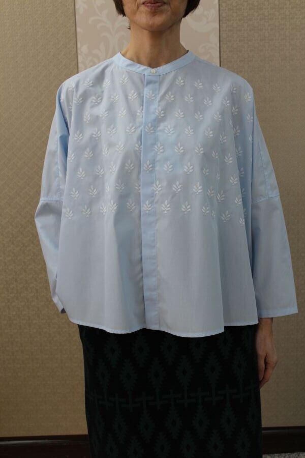 マットな刺繍糸で表現した葉っぱ柄の長袖シャツ☆