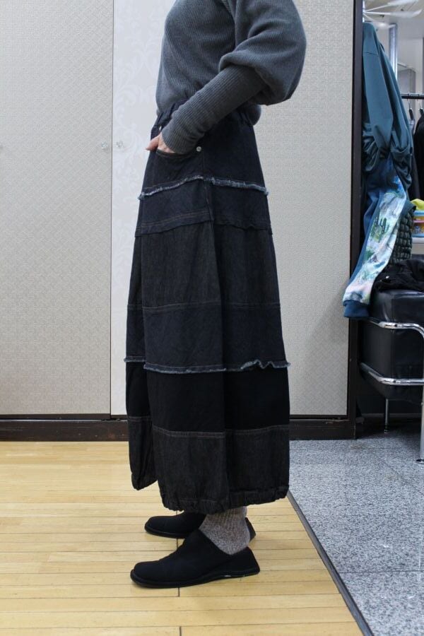 大胆な横切替でグラデーションを付けたデニムスカート。