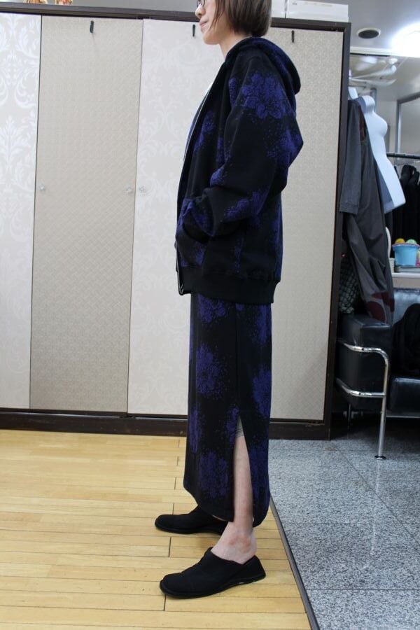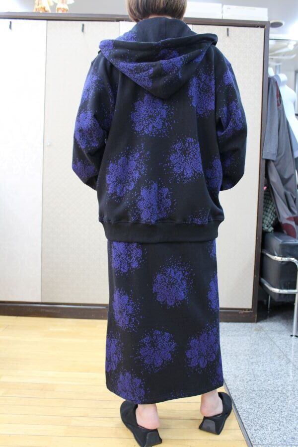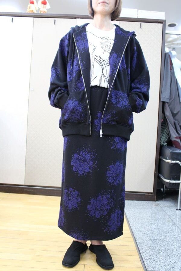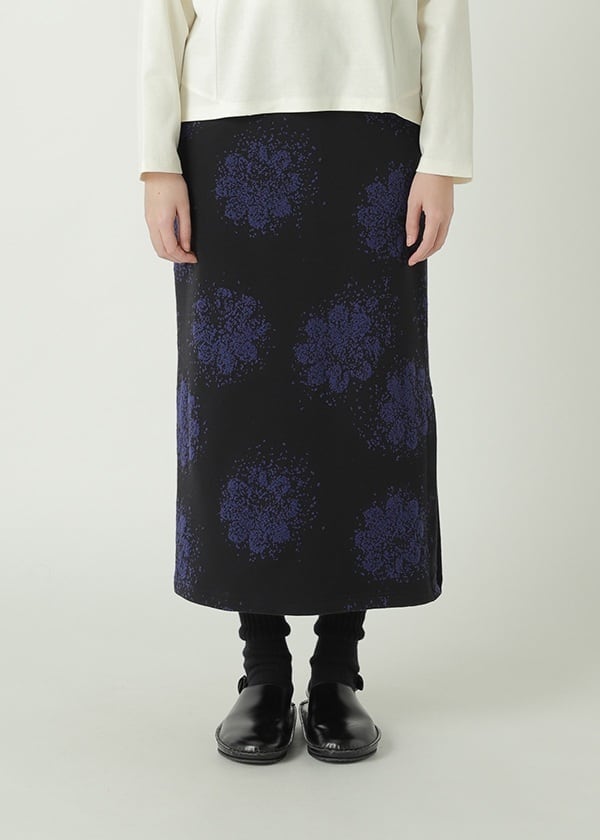 花のシルエットを点描のように表現したジャガード裏毛素材