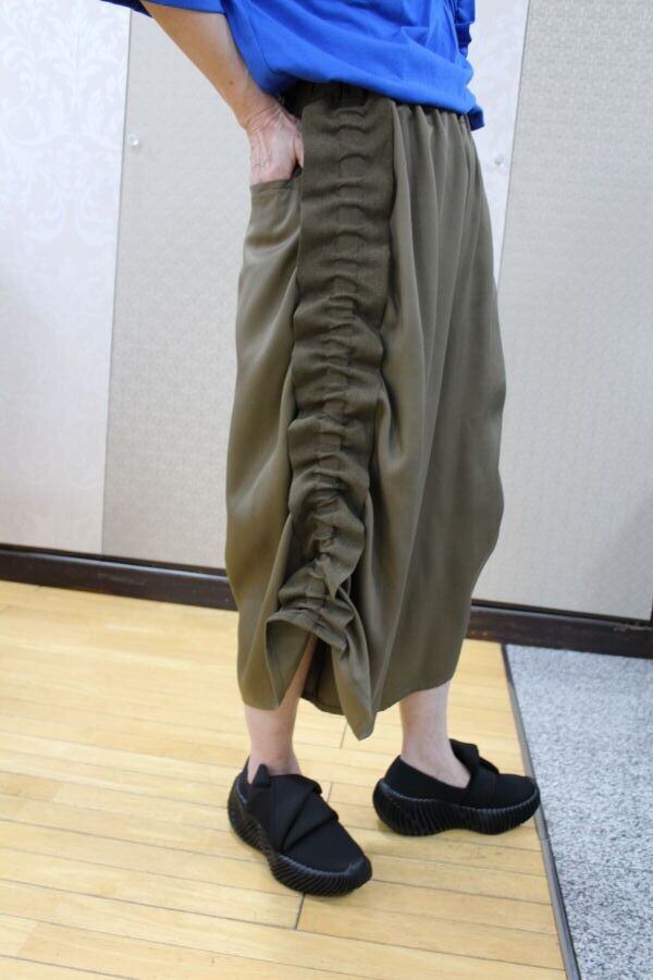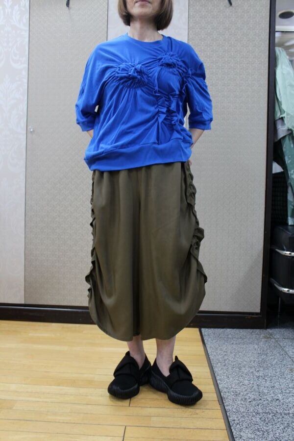 ギャザーの縮みを活かした立体的なシルエットが特徴。