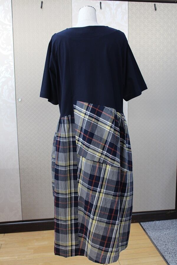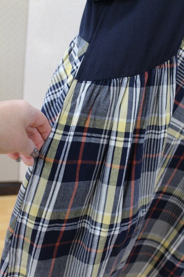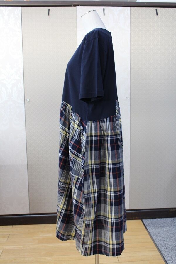 袖、身頃部分は綿のカットソー、スカート部分は綿麻のマドラスチェック