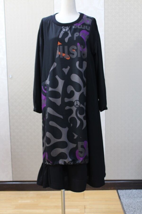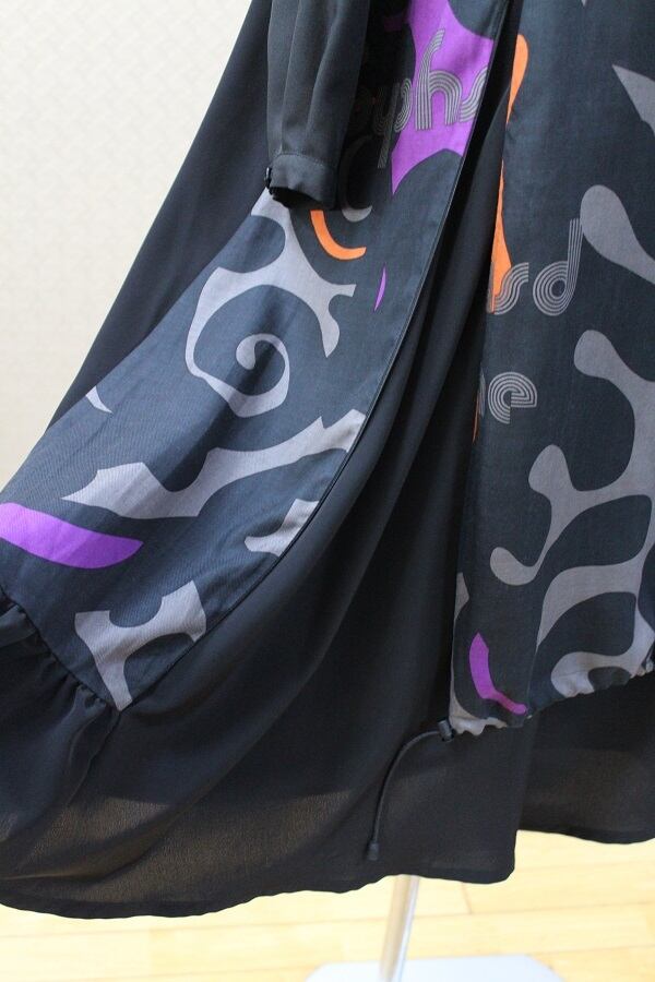 オリジナルのサイケデリックプリントを使用した長袖ドレス。