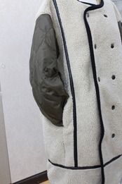 軽くて暖かいボアをメインに、袖をキルトで切り替えたノーカラーコート。