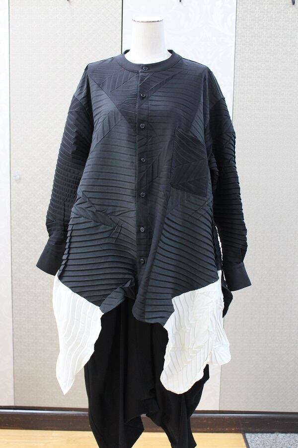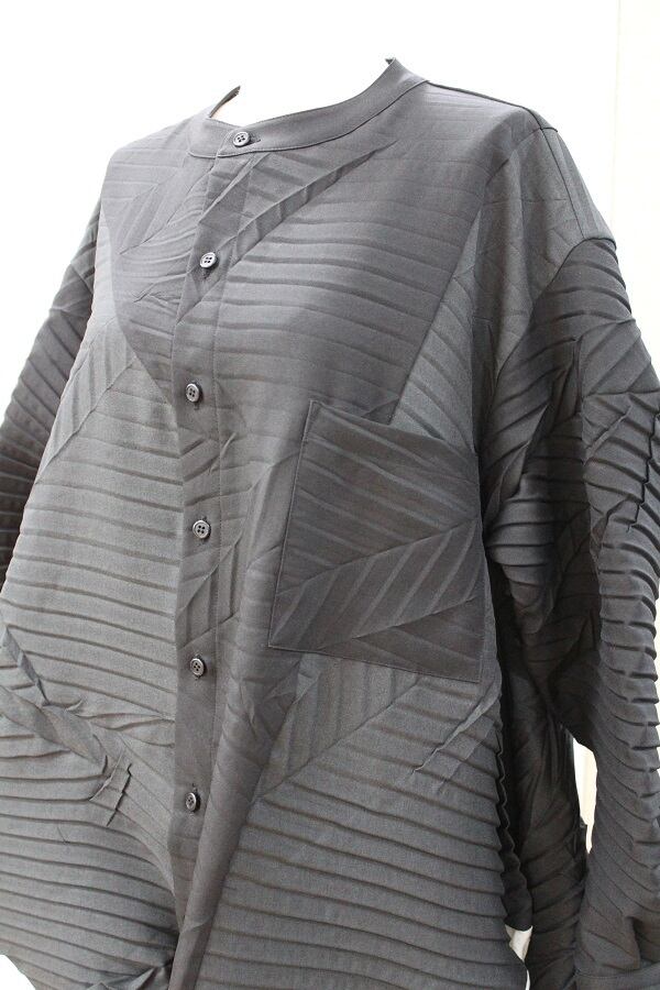 クラッシュプリーツをミックス切替えした個性的なプリーツのアウター。