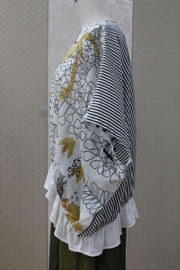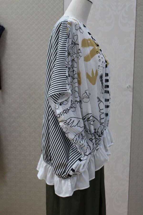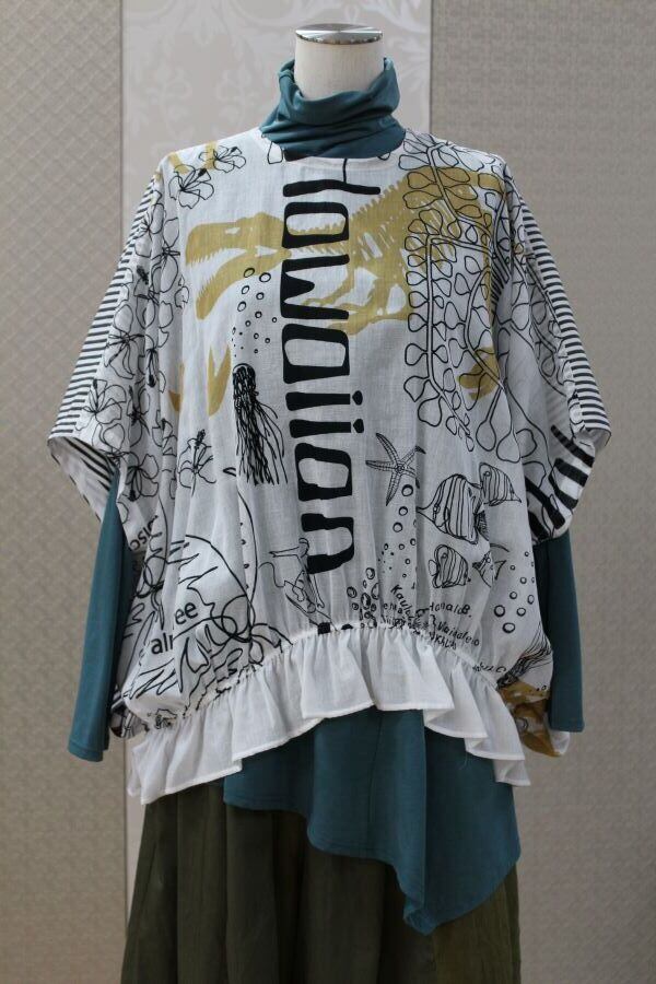 透け感がある素材にリゾート感の中にダイナソースがミックスしたゴムオリジナルのプリントが素敵☆